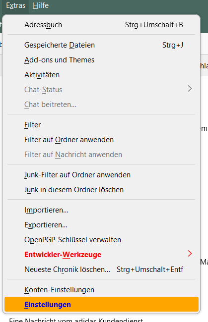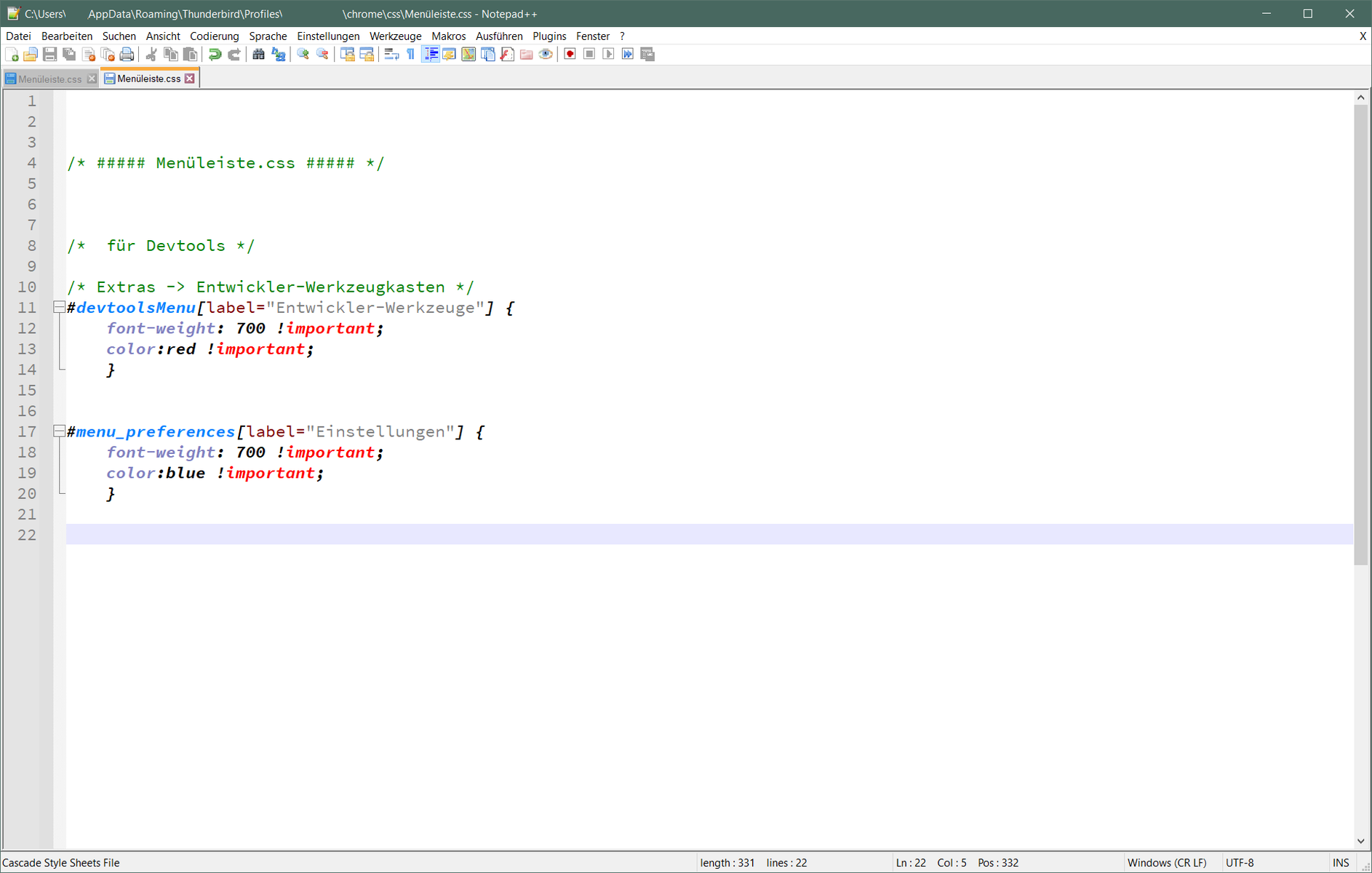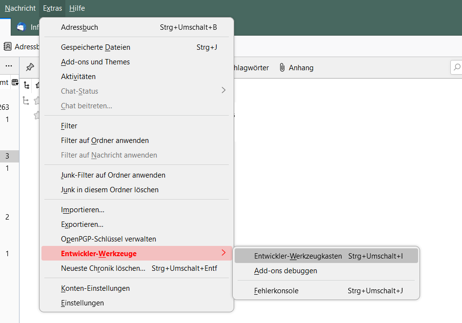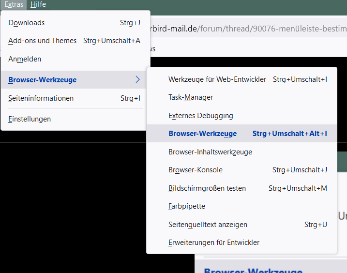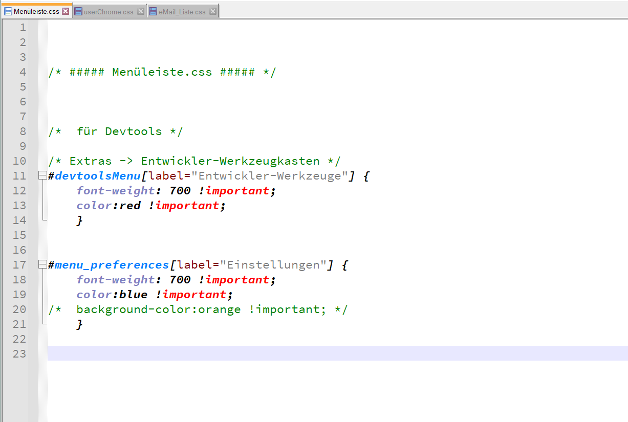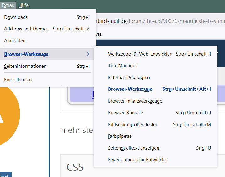 ich habe den Menüeintrag für die Devtools "Extras -> Entwickler-Werkzeugkasten" farbig verändert.