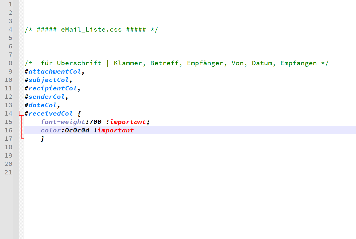 mein CSS (mehr habe ich garnicht stehen)