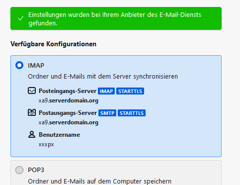 • Bestehendes Konto einrichten - IMAP-Einstellungen werden erkannt - Fertig - geht aber nicht weiter