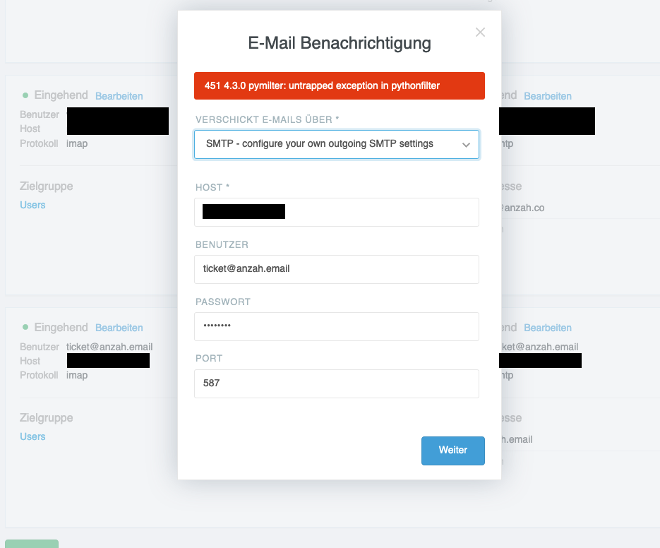 Seit wenigen Tagen kann ich keine Mails mehr verschicken. Siehe Bild in der Anlage. Ich benutze zwei unterschiedliche Mailserver und bei beiden kommt der gleiche Fehler.