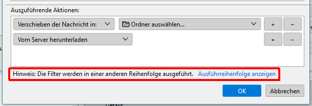 2. Bei den Providern direkt eine Filterregel erstellt: Adressen (die ich vorher auf einem Google-Konto sammle) backupe ich jetzt einmal im Monat und übertrage die dann auf den Providerfilter. Filter in Thunderbird rausgeschmissen.