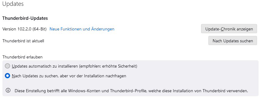 In den TB-Einstellungen habe ich dies bei Updates eingestellt.