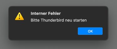 neuerdings bekomme ich bei jeder E-Mail, die ich versenden möchte, die Fehlermeldung „Interner Fehler. Bitte Thunderbird neu starten“. Nach einem Neustart des Programms kann ich dann die Mail versenden.