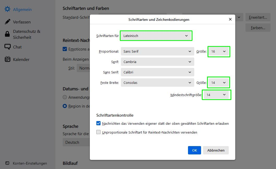 - ob es im TB für das "normaler Text" Format eine "WYSIWYG" Voreinstellung gibt, welche das was ich händisch eingebe so sendet wie es im "verfassen" Fenster gezeigt wird?