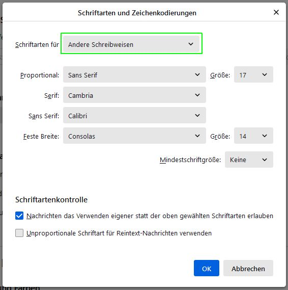 Sich also mit der richtigen Bedienung einer Textverarbeitung vertraut zu machen, ist bestimmt eine gute Idee. Aber bitte nicht davon ausgehen, dass dann mit diesem neuen Wissen bestückt, das alles 1:1 in Thunderbird umsetzbar wäre.