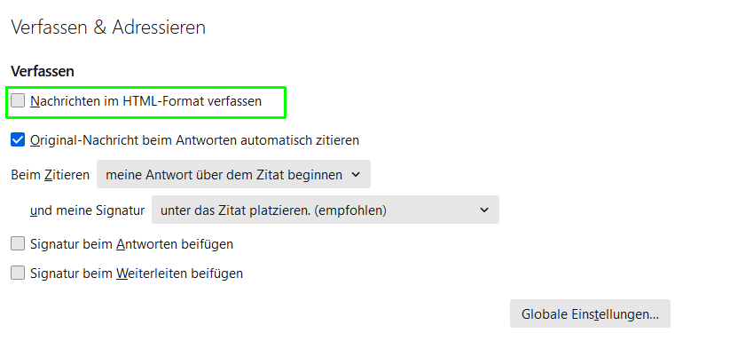 Auf meinem Hauptkonto arbeite ich mit Plain Text, auf einem anderen mit HTML.