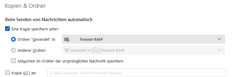 • Thunderbird speichert gesendete E-Mails nicht im Gesendet-Ordner