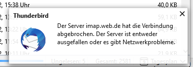 Ich kann bei den Konten-Einstellungen nichts Auffälliges finden. Das Problem besteht seit vorgestern. Zudem ist das Abrufen von Mails häufig gestört.