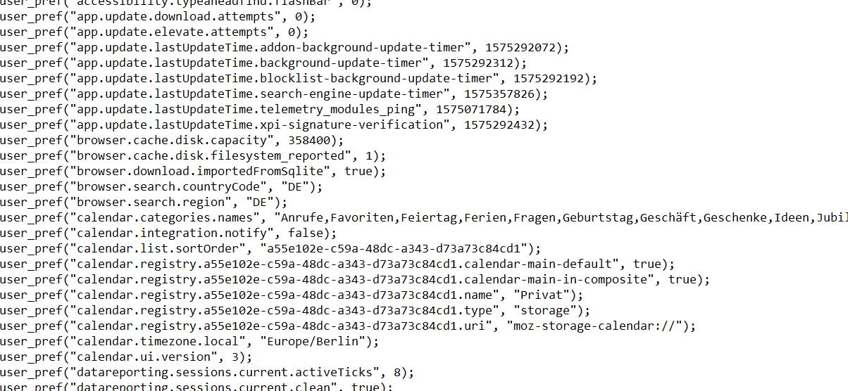 In deinem Ordner "AppData>Roaming>Thunderbird>Profiles>jg8ipwg2.default" findes du u.a. eine Datei namens prefs.js.
