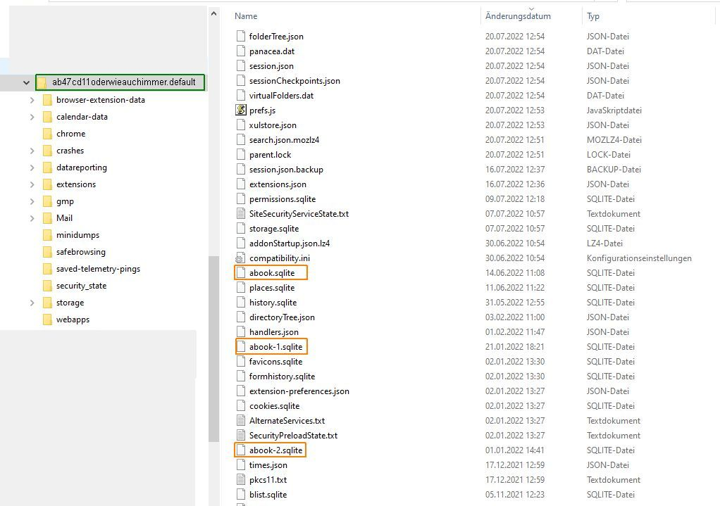 wahrscheinlich geht es mit Profilordner weiter - aber- wie finde ich meine Adressdaten? Wahrscheinlich im backup - aber wo liegen sie da? unter profiles>j8ipwg2.default>abook.sqlite????