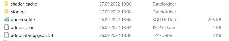 Dann in dem guten alten gesicherten Profilordner nachsehen, wie viele abook.sqlite (ohne v im Namen) vohanden sind.