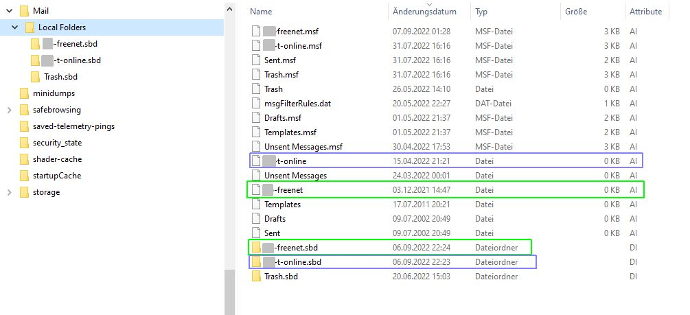 Der Inhalt dieser Profilordner, besonders jeweils Mail mit Local Folders sollte gezeigt werden.