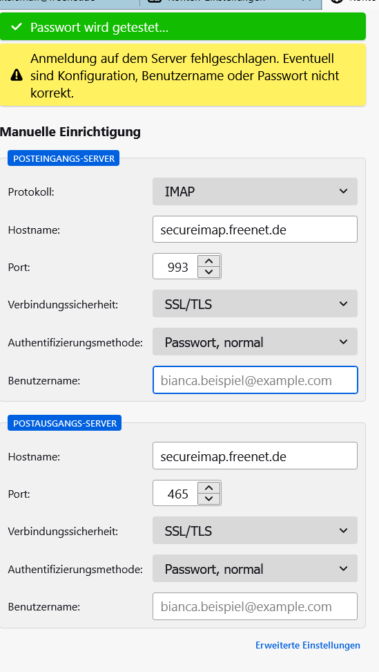 Bei dem host-Namen gibt er automatisch mx.freenet.de vor - ich habe secureimap.freenet.de daraus gemacht - und trotzdem!