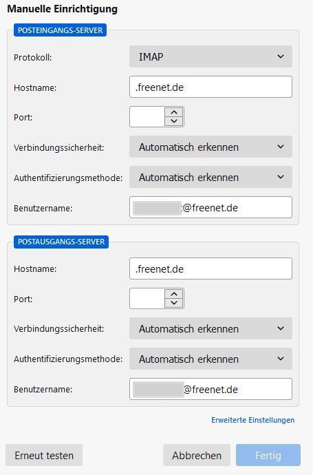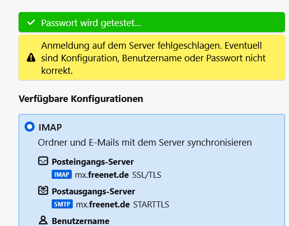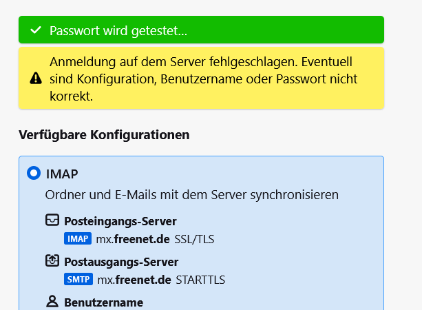 Habe gerade versucht, parallel zum POP ein IMAP Konto anzulegen - ging wieder nicht, gleiche Fehlermeldung