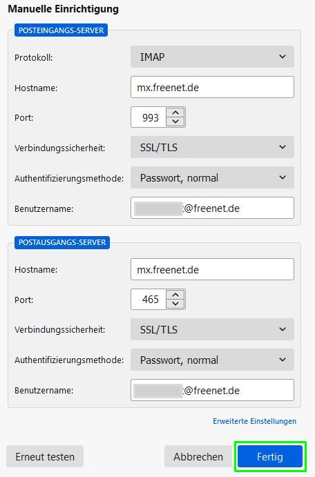 Ich sehe da STARTTLS und bunte Fensterchen bekomme ich auch nicht. Was bei mir geht, muss bei Dir auch gehen.