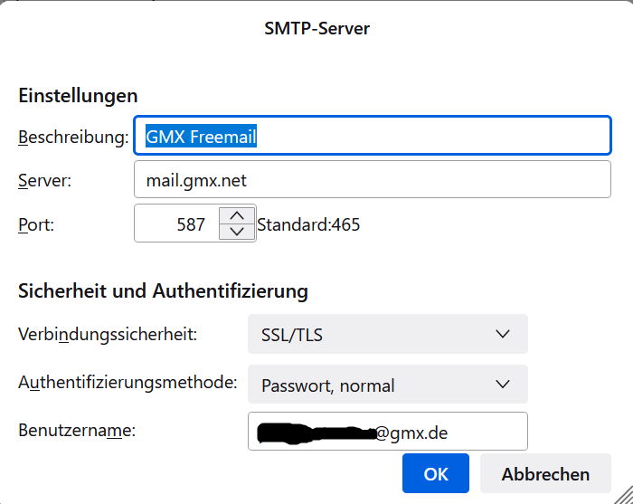 ich habe ein E-Mail-Postfach bei GMX und versuche mir ein entsprechendes Konto bei Thunderbird (neueste Version, heute heruntergeladen) einzurichten. Leider bekomme ich die Nachricht "Anmeldung auf dem Server imap.gmx.net mit Benutzernamen "...@gmx.de" fehlgeschlagen". Welche Servereinstellungen soll ich denn wählen? Ob es überhaupt ein POP- oder IMAP-Konto ist, weiß ich nicht, aber Thunderbird hat das so gefunden.