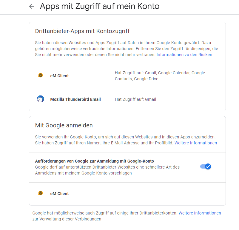 Ist etwa Thunderbird im Gegensatz zu eM Client eine "unsichere App"?