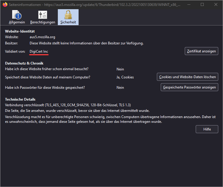 Da kann man sich fragen, warum so etwas gemacht wird. Vermutlich soll das davor schützen, über eine manipulierte DNS-Auflösung an den falschen Download zu geraten. Ob Thunderbird zu diesen Kandidaten gehört, weiß ich bis jetzt freilich nicht mit Sicherheit.