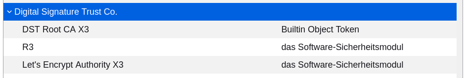 In den Zertifizierungsstellen finde ich bei mir die Digital Signature Trust Co. gar nicht. Von der DigiCert Inc ist ein ganzer Schwung vorhanden.