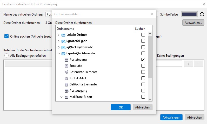 Funktionieren tut das E-Mail-Postfach einwandfrei, es fehlt nach dem Start nur immer in dem Gruppenordner.