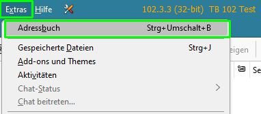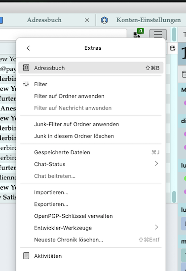 dann auf waagrechte Striche dann auf Extras weiter auf Adressbuch.
