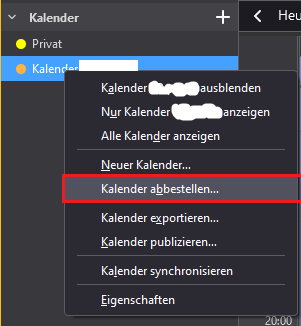 Ok, danke, aber "Kalender abbestellen", das mache ich doch wahrscheinlich links in dem Bereich, oder?