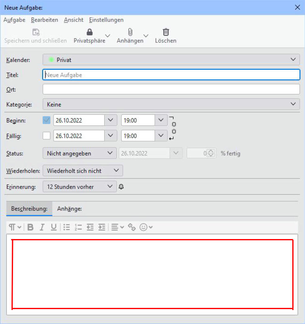 mit markiertem Augabenbeschreibungsfeld