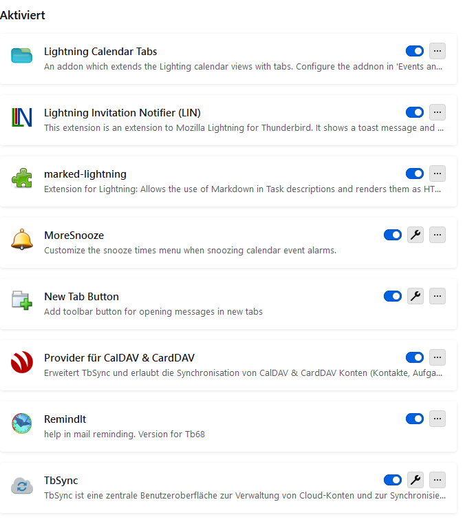 - Habe "Lightning Konfigurieren" gemacht: https://support.mozilla.org/de/kb/lightning-konfigurieren