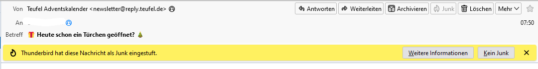 Ich habe das gleiche Problem mit dem Newsletter von Teufel.