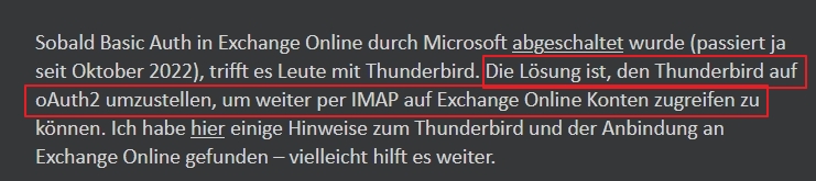 Thunderbird 102: IMAP-Problem bei Microsoft Exchange/MS365 (oAuth2)