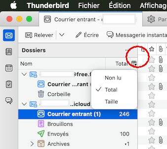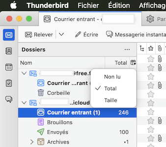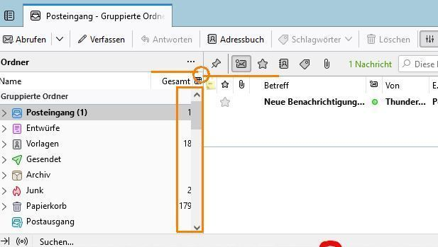 Wenn die Ordnerspalten eingeblendet werden, wird standardmäßig nur die Spalte mit der Gesamtzahl der Nachrichten angezeigt.