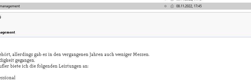 Oben sieht alles normal aus, im Nachrichtenfeld der jeweiligen Mail, Katastrophe.