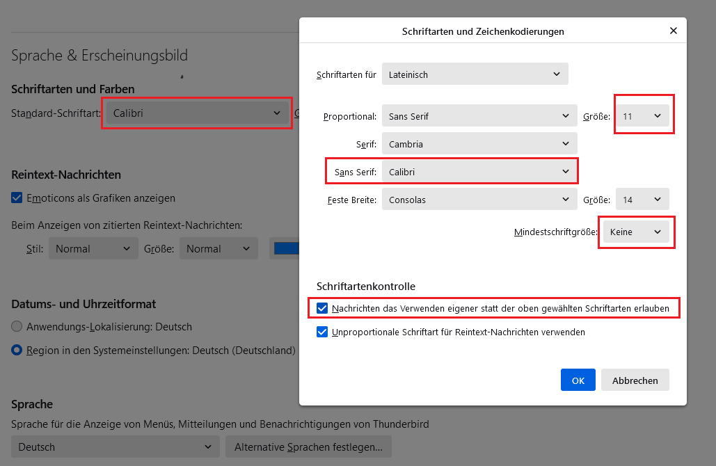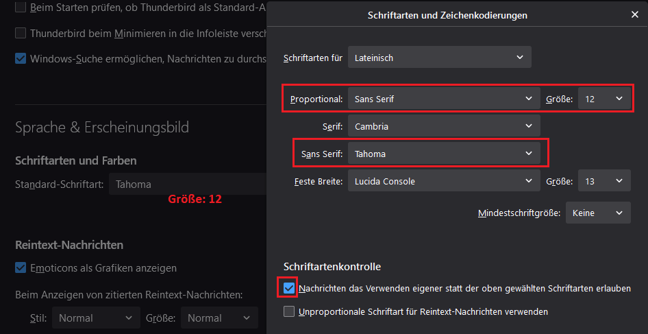 • Thunderbird 78 und die Schriftarten/-größen
