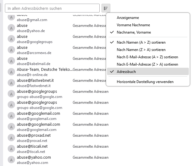 habe eine Frage zum Adressbuch "Alle Adressbücher".