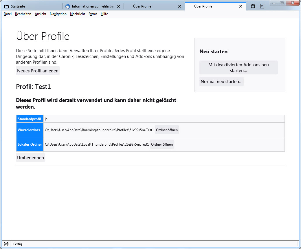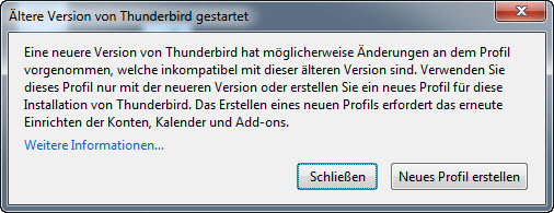 Ihr Profil "Thunderbird" kann nicht geladen werden. Es ist möglicherweise nicht vorhanden oder ein Zugriff ist nicht möglich.