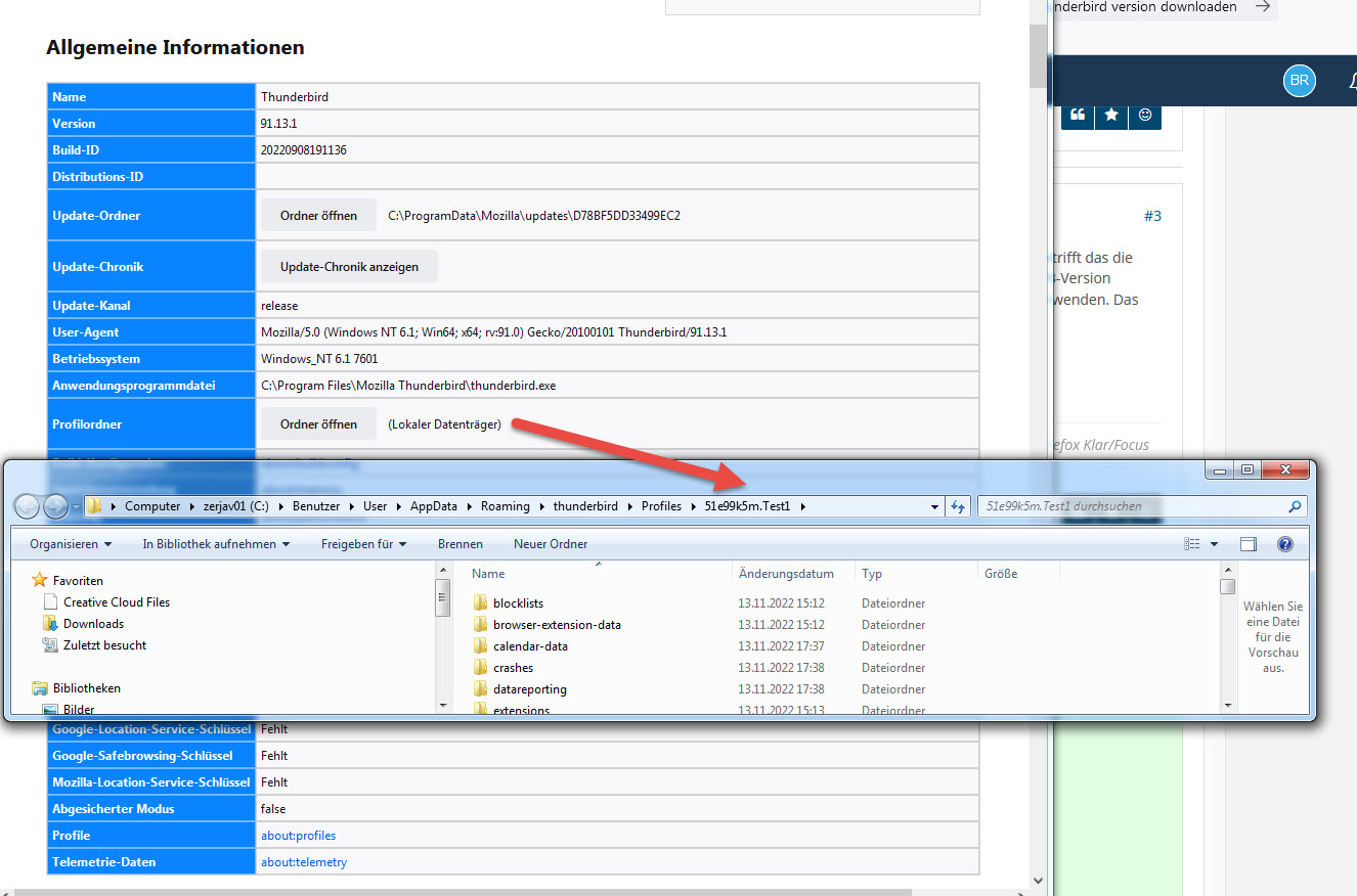 vielleicht kann mir jemand weiterhelfen, die aktuelle Thunderbird Version 91.13.1 lädt mein "altes Profil" nicht mehr, habe soweit alles mehrfach gegengecheckt, kann mir aber nicht erklären, wieso es nicht funktioniert, wobei ich jetzt am vierten Tag auch nicht mehr den Wald vor lauter Bäumen sehe. Die vorherige Thunderbirdversion weiß ich nicht mehr, da ich zu Beginn der Woche einfach auf Aktualiseren geklickt habe.