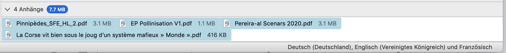 Man sieht deutlich, dass alle vier Anhänge das PDF-Symbol (von macOS) anzeigen.