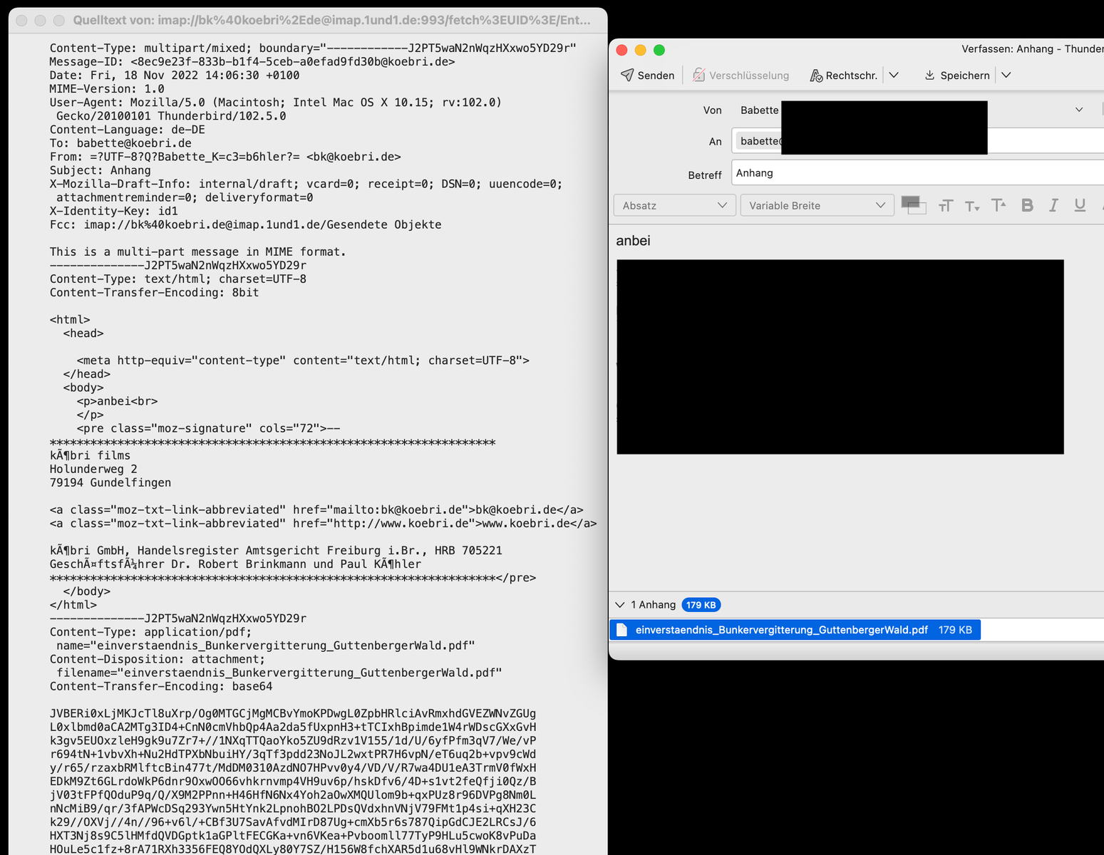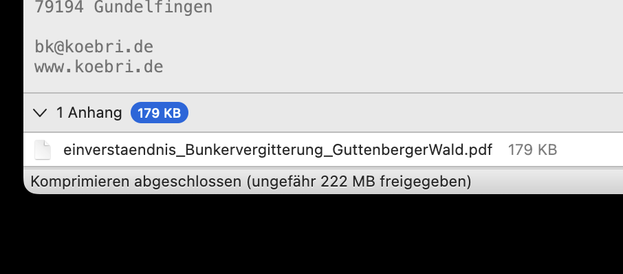 PDF-Dateien lassen sich nicht unbeschädigt an Nachrichten anhängen. Das Problem tritt nur bei PDF-Dateien auf. Es tritt immer auf, egal wie die Datei angehängt wird (direkt von der Festplatte des Rechners oder von externem Speichermedium oder Cloudspeicher oder per drag and drop oder per filelink / dropbox).
