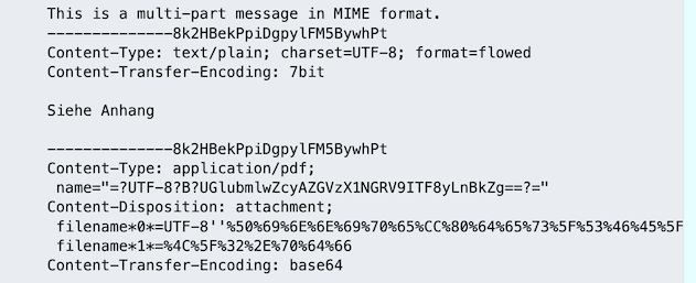 Mit Anhang enthält eine Mail mehrere Abschnitte – gefragt waren die Header des Anhangs. s. auch #6.