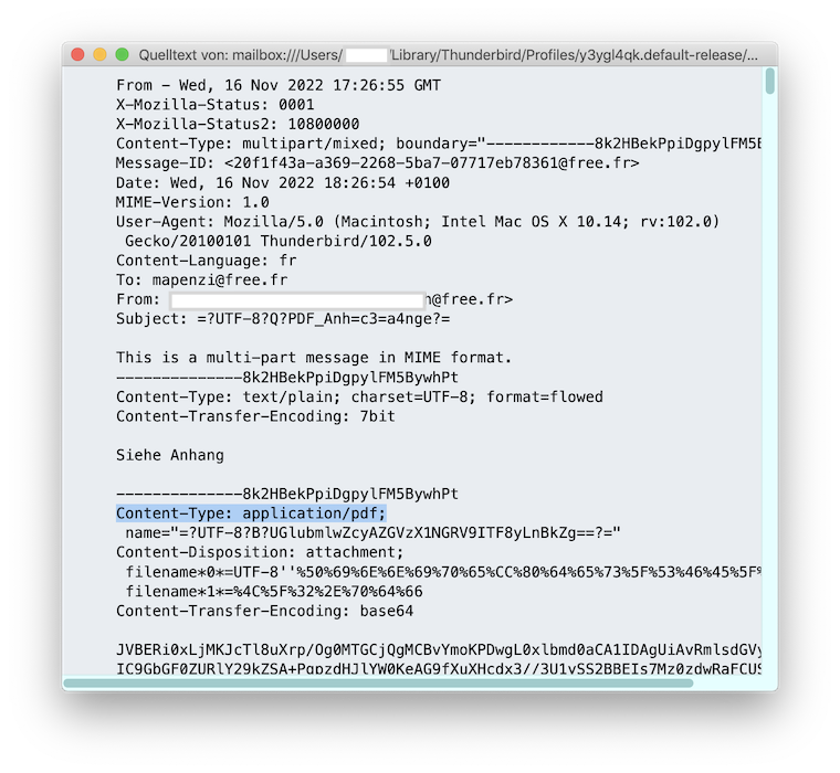 Ich stelle hier ein neues Bild ein mit den kompletten Kopfzeilen einer von mir an mich gesendeten Mail mit zwei PDF Anhängen.