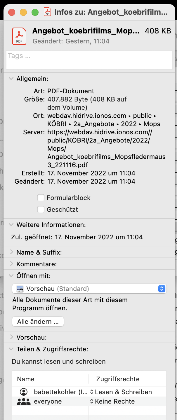 Also, hier kommt das komplette Bild wie gewünscht neben der Mail. Dann habe ich gecheckt, welches Programm voreingestellt war (Adobe) und habe auf Preview geändert. Ebenfalls anbei. Daraufhin erneut probiert. Ich trau mich ja kaum es zu schreiben .... wieder die gleiche Fehlermeldung