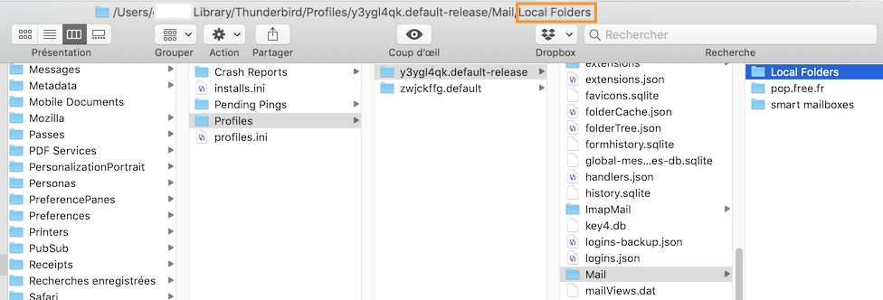Unter '/peter/library/thunderbird/' finde ich die lokalen Ordner nicht....