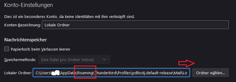 Der Lokale Ordner lautet: C:\Users\XXXX\AppData\Roaming\Thunderbird\Profiles\ewe1b3ft.default\Mail\glXXXXX
