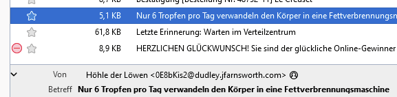 Ich habe mit dem Cursor auf einer Mail stehend mit dem Betreff: "Rechnung u. Versandbestätigung"