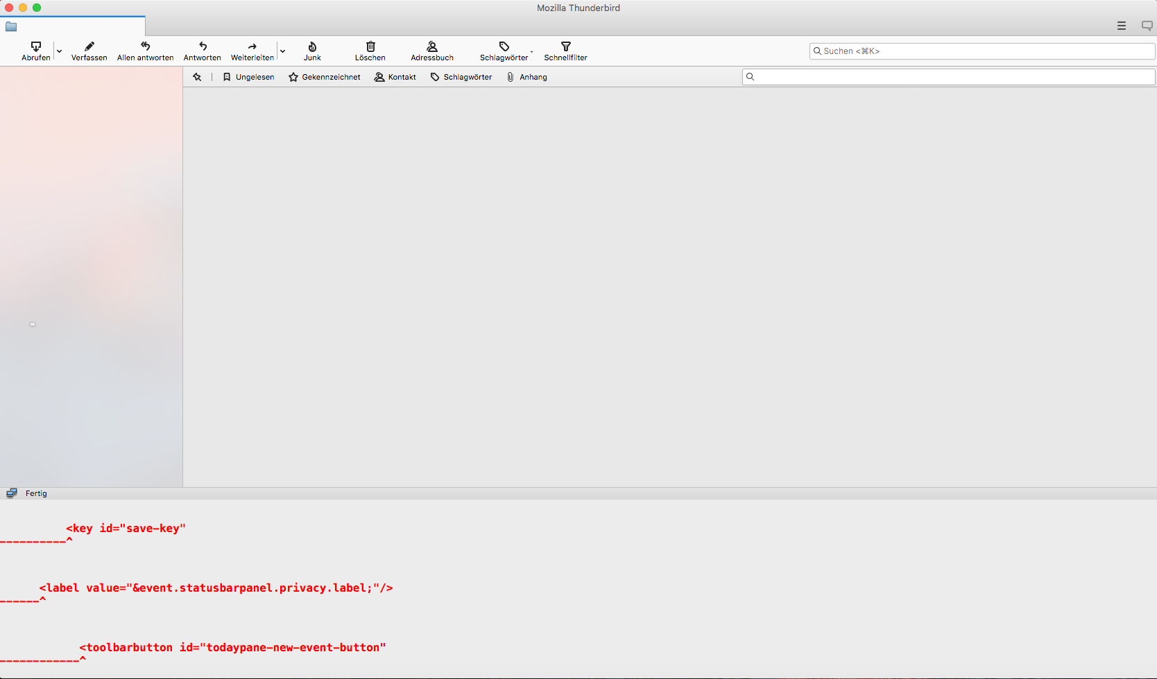 ich habe hier ein interessantes Verhalten von Thunderbird 68.12.1 auf einem iMac. Nach Anlegen eines neuen Benutzers und Löschen des alten, habe ich von einem anderen Mac einen nachweislich einwandfreien Thunderbird Profilordner an die entsprechende Stelle der Library im neuen Benutzer kopiert. Beim ersten Starten von TB ist alle OK . Sämtliche IMAP Konten werden angezeigt und synchronisiert. Alles OK.