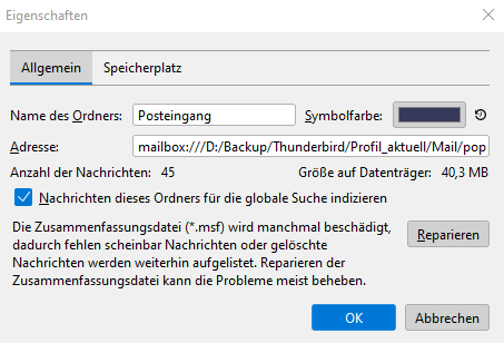 Ich hab mal das Profilverzeichnis von dieser Mailadresse auf irgendein leeres Verzeichnis geändert und dann ist natürlich bei der Mailadresse in Thunderbird alles leer, aber er beginnt sofort mit dem Abrufen aller Mails der letzten Jahre. Wenn ich wieder auf das richtige Verzeichnis gehe, zeigt er wieder nur alle Mails bis Mitte Oktober an und ruft nichts ab.