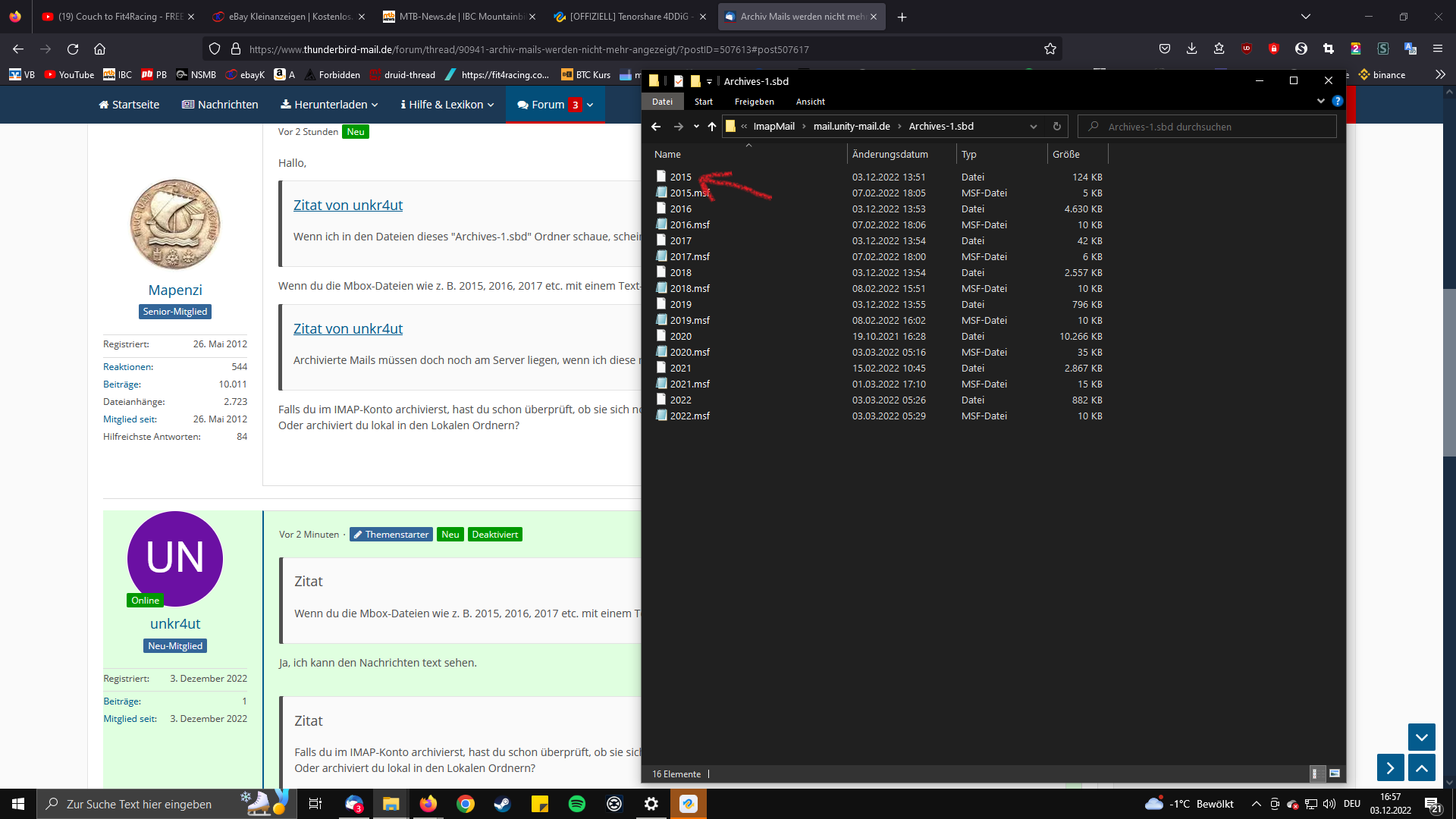 ich habe ein Problem mit meinen Mails, welche ich über Jahre hinweg archiviert hatte. Diese werden leider nichtmehr angezeigt. Ich sehe noch die Ordner 2015, 2016,2017 etc. aber die Mails darin sind weg. Wenn ich in den Dateien dieses "Archives-1.sbd" Ordner schaue, scheinen sie noch da zu sein, werden aber leider im Programm nicht angezeigt mehr.