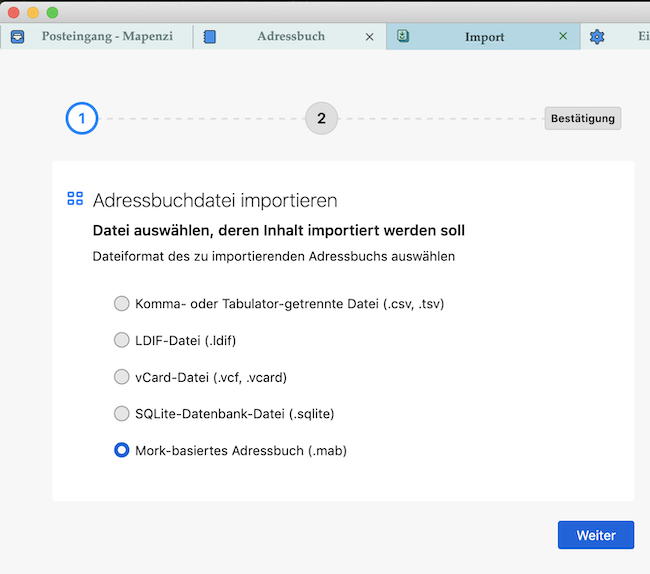 Die MailOrdner werden angezeigt das Adressbuch aber nicht (s.A.)