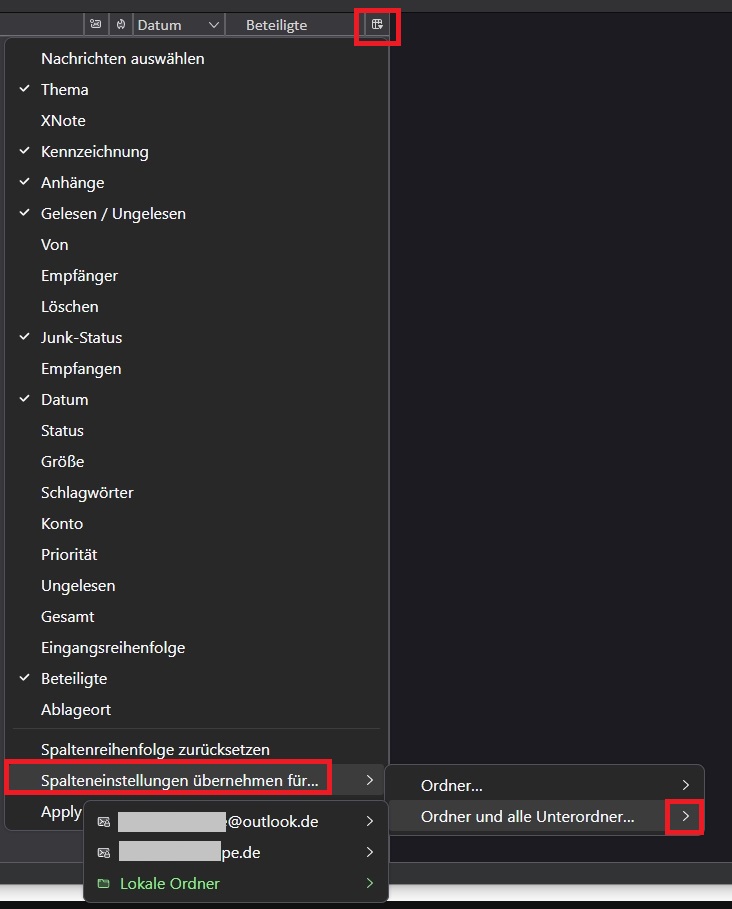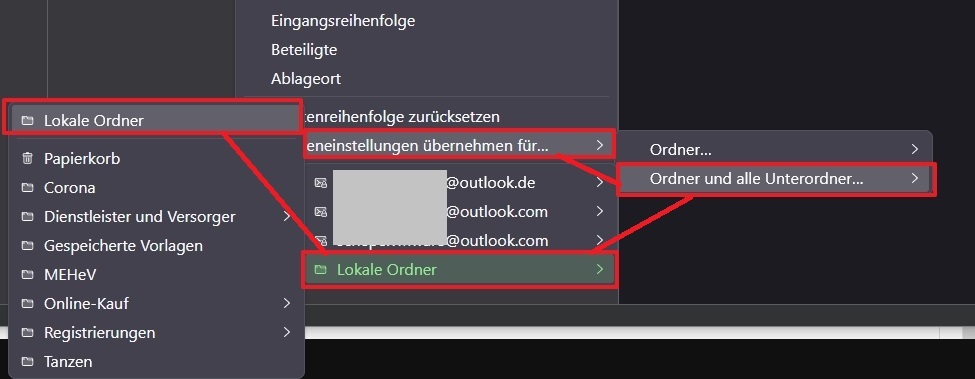 ich habe mehrere Postfächer und viele Ordner in meinem TB.
