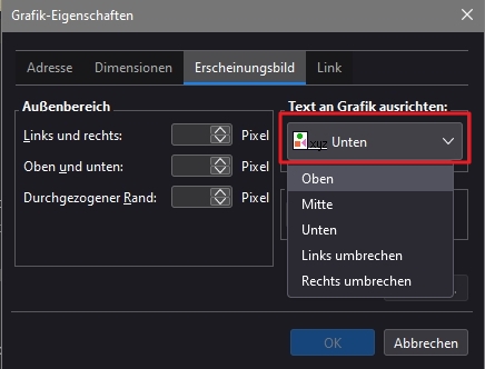 Ich möchte eine Grafik mittig platzieren und links und/oder rechts davon Text eingeben und anzeigen.